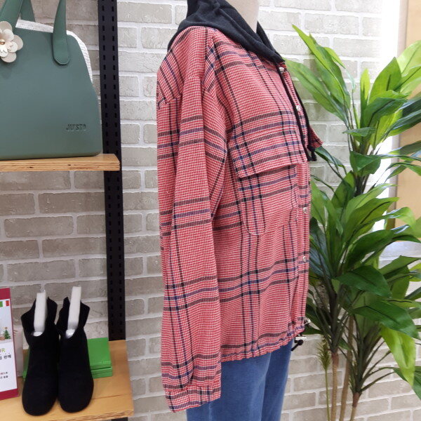 남방에 후드가있어 점퍼형으로도 입을수 있는 체크남방입니다밑단에 끈이 있어 사이즈 조절이 가능하며 양쪽 가슴에 포겟도 있어 편리한 멀티 남방입니다