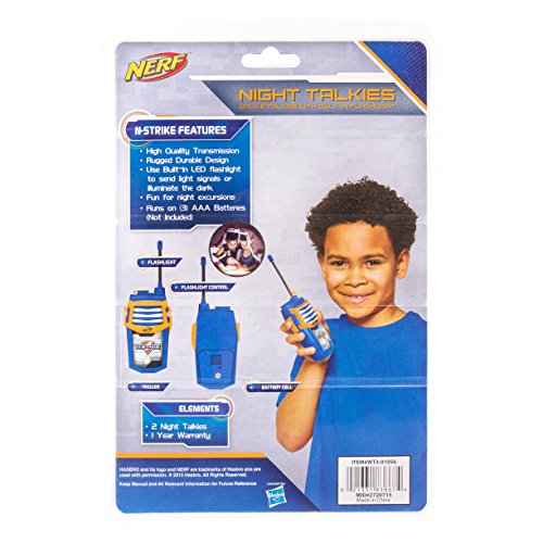Wide range communication capability Built-in flashlight Ages 4 and up Brand : Nerf Item model num : WT3-01056 MPN(PartNumber) : 4542748 EAN : 0021331838674 Product Dimensions(LxWxH) : 20x4x25cm ; 204 g Package Dimensions(LxWxH) : 27x19x5cm ; 204 g
