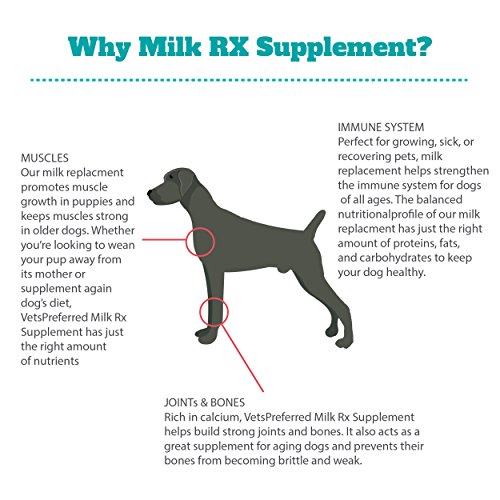 -. Feature : PREMIUM VETERINARIAN-GRADE! Like us humans during certain stages in our lives, dogs can also benefit from nutritional supplements to their diets. Our Advanced Milk Rx Supplement is specifically formulated to help nourish growing puppies, pregnant/lactating dogs and senior dogs. / COMPLETE NUTRITIONAL SUPPLEMENT FOR DOGS- Our dog milk powder is rich with essential proteins, fats, vitamins, and minerals. Perfect for puppies who are not receiving the necessary nutrition that they need at their early stage of development. / DELICIOUS & EASY TO DIGEST - Our milk replacer for dogs also contains critical digestive enzymes and immunoglobulin to help maintain a healthy digestive and immune system for vulnerable dogs like puppies, birthing or lactating mothers, and senior dogs. A delicious taste resembling natural mammals' milk also makes our formula very appealing to even the most finicky canines. / HELPS CREATE STRONG BONES & HEALTHY TEETH - Made with natural milk proteins and calcium, Vets Preferred Milk Rx Supplement supports development of strong bones & healthy teeth / CRITICAL ANTIBODIES FOR STRENGTH & PROTECTION - Dogs are often weakened when they are very young, have given birth or simply getting older in life. That's why our antibody-dense formula is vital to not only nourish but prevent disease and illness.