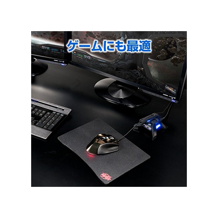 AC불요의 버스 파워에 2포토의 USB허브를 탑재 하고 있습니다. 눈앞에 기기의 접속 를 할 수 있습니다.케이블 고정부는 부드러운 실리콘제에,고정하여 쉬워지고 있습니다.