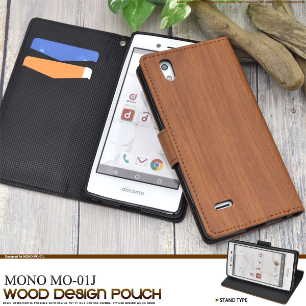 木目デザインがオシャレな、MONO MO-01J用ケースポーチ!