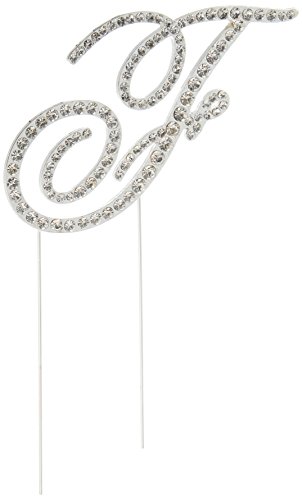 Unik Occasions Victorian Crystal Rhinestone Wedding Cake Topper, Large, Letter F, Silver