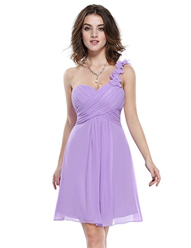 Your perfect bridesmaids dress This adorable style features a non-adjustable one shoulder design enhanced by attached flowers. The dress also features a ruched, sweetheart neckline creating a figure flattering silhouette for nearly all the girls in your bridal party. For most women, this dress will hit right above the knee.Feature