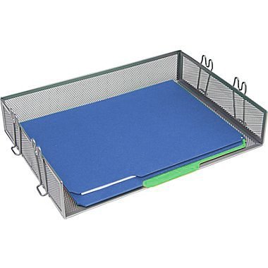 -. Feature : Solid Design Stackable desk tray paper organizer / 2 1/2"H x 13 1/4"W x 10 3/4"D / Holds letter- and A4-size materials / 1 Tray per pack / Silver coated steel mesh