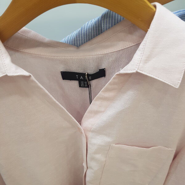 라인이예쁜 린넨셔츠입니다입었을때 많이 비치지도않고라인이들어가 날씬해보이는효과도있습니다시원하게 착용하세요