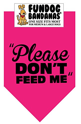 -. Binding : Misc. -. Brand : FunDog Bandanas -. Color : Hot Pink -. EAN : 0083351959999 -. Feature : Cute! / Fun! / Affordable! / Makes a great gift! / 22x22x31inches -. Label : The Dog Perk Corporation -. Manufacturer : The Dog Perk Corporation -. MPN : Fun-4970 -. PackageQuantity : 1 -. PartNumber : Fun-4970 -. ProductGroup : Pet Products -. ProductTypeName : PET_SUPPLIES -. Publisher : The Dog Perk Corporation -. Size : One size fits most for medium to large dogs -. Studio : The Dog Perk Corporation -. Title : BANDANA - Please Don't Feed Me for Medium to Large Dogs - hot pink with black ink -. UPC : 083351959999