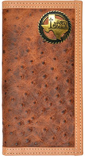 (Genuine Texas Brand)/Accessories/Wallets, Money Key Organizers/DIRECT FROM USA/Custom Antique Brass Praying Cowboy Church Ostrich Print long checkbook wallet