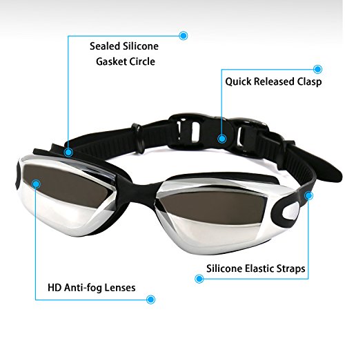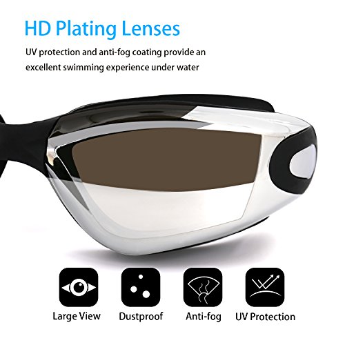 ANTI-FOG AND UV PROTECTION—The anti-fog coating design make sure this swimming goggles have exceptional Clarity and underwater vision. UV protection with mirror coating not only have stylish look but also prevent ultraviolet rays.