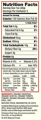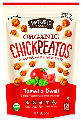 -. Feature : Organic Chickpeatos 5oz / Delicious Crispy Tomato Basil Chickpea Snacks Roasted in Olive Oil / 6g of Protein and 5g of Fiber in Each Serving / 67% Less Fat Than Potato Chips With 50% Fewer Net Carbs Than Pretzels / Gluten-Free Organic, NON-GMO, Vegan, Kosher