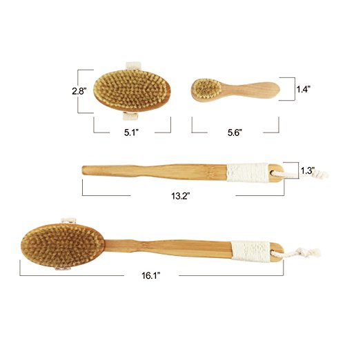 This natural bristle body brush kit are your perfect assistant for skin brushing. Great for exfoliating dead skin, improving circulation and enhancing your daily shower experience!