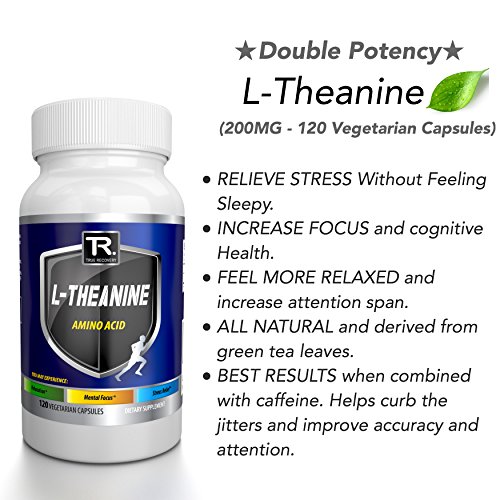 -. Binding : Health and Beauty -. Brand : TR Supplements -. EAN : 0784672601320 -. Feature : ★ FEEL MORE FOCUS AND IMPROVED ATTENTION with Amazons MOST POTENT Amino Acid. Because L-Theanine is considered a relaxing agent without sedative properties you will experience more productivity and feel more relaxed due to its ability to cross the blood brain barrier. / ★ COFFEES #1 SIDEKICK FOR JITTER-LESS ENERGY and improved attention. Add this to your morning coffee routine and you won't regret it! L-Theanine has been shown to "Take the edge off"of typical stimulants like caffeine and leave you with a clean AND more focused energy. / ★ BEST STRESS RELIEVER ON AMAZON when taken at proper dosages. Our POTENT 200Mg capsules provide the dosage you need to kick back and relax. / ★ MOST POTENT AVAILABLE (BEWARE IMITATORS). Not all L-Theanine is created equal. At True Recovery each batch is thoroughly tested and re-tested for purity and potency to insure it meets your premium standards. / ★ 100% LIVE BETTER PROMISE - If you don't love it, return it and get your money back instantly. What are you waiting for ... TRY IT NOW! -. IsAdultProduct : 0 -. Label : True Recovery -. Manufacturer : True Recovery -. MPN : 003 -. PackageQuantity : 1 -. PartNumber : 003 -. ProductGroup : Health and Beauty -. ProductTypeName : HEALTH_PERSONAL_CARE -. Publisher : True Recovery -. Studio : True Recovery -. Title : NATURAL L-Theanine 200mg (Double Potency) - 120 Vegetarian Capsules -100% Non GMO - Best Rated For Stress Relief - Focus - And Relaxation | 100% Money Back Guarantee -. UPC : 784672601320