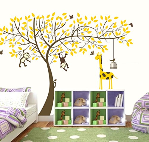(VanBest)/Kids' Furniture Room Decor/Room Decor/DIRECT FROM USA/VanBest Monkeys Tree and Yellow Giraffe Wall Sticker Living Room Bedroom Children's Room Nurser...