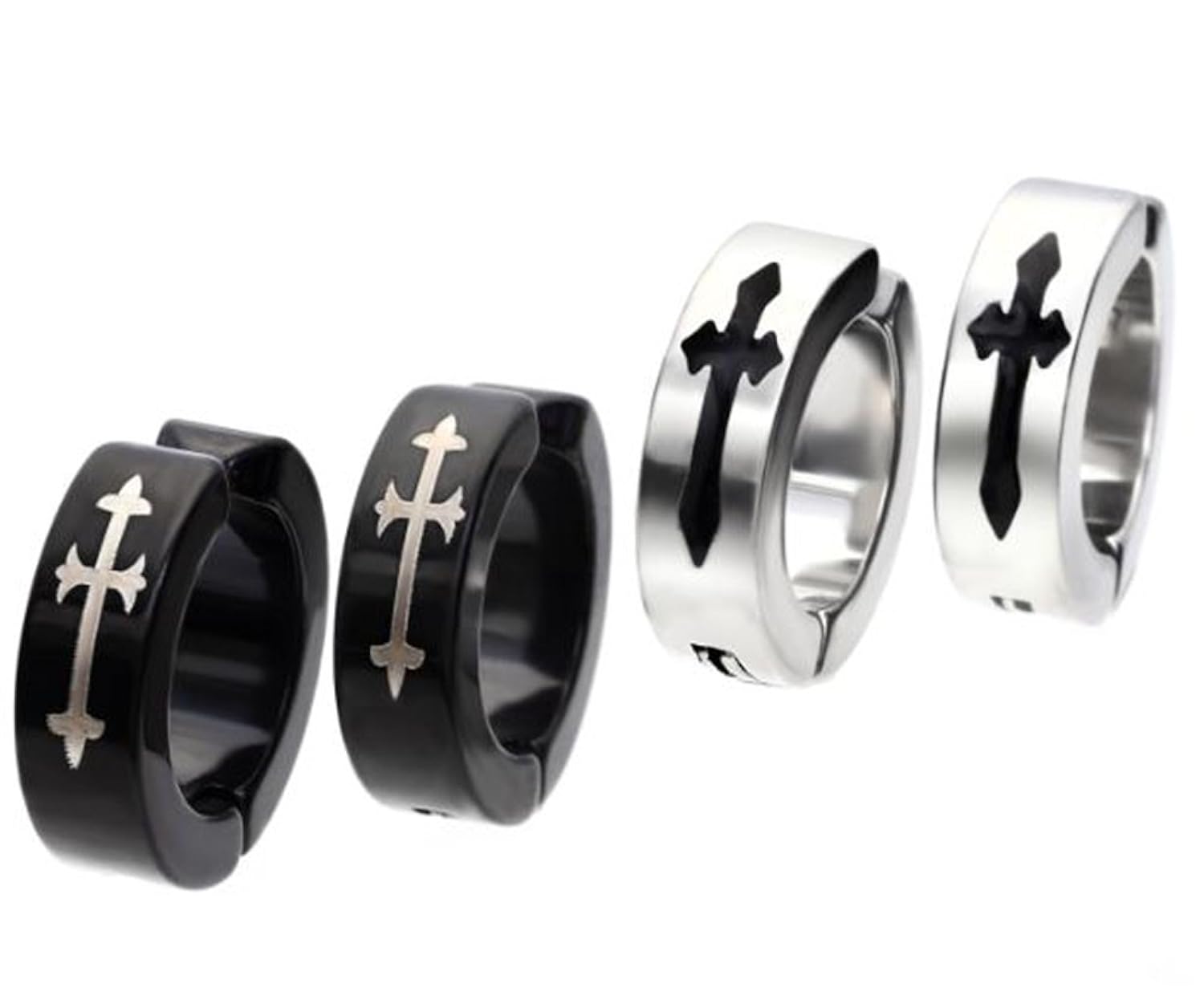お得な2色ペアセット☆クロスフェイクピアス 収納ポーチ袋付き!