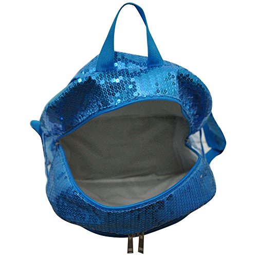 Product DescriptionZipper Closures Two Side Net Open Pockets Materials:Sequin Dimenions:13 1/4" x 15" x 5" Adjustable straps Front Zipper Pocket with Two Open Pockets Adjustable Strap Adjusts to 15" 0