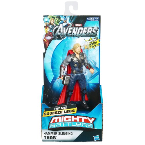 Studio : Hasbro ReleaseDate : 2012-02-27 Publisher : Hasbro Binding : Toy Product Description Take your Thor adventures to a whole new level with this muscular Hammer Slinging Thor figure! He battles evil with his signature hammer, and you can activate his hammer spinning attack by squeezing his legs! Will any enemy be able to stand against your Hammer Slinging Thor figure? It’s all up to you! 0