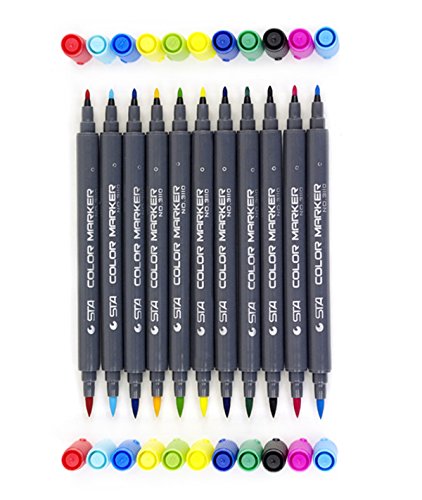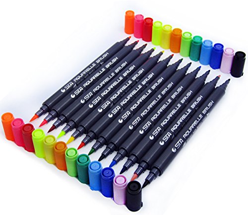 AGARE 12-Piece Water Based Ink and Non-Bleed Dual End Brush and Fine Tip Marker Set