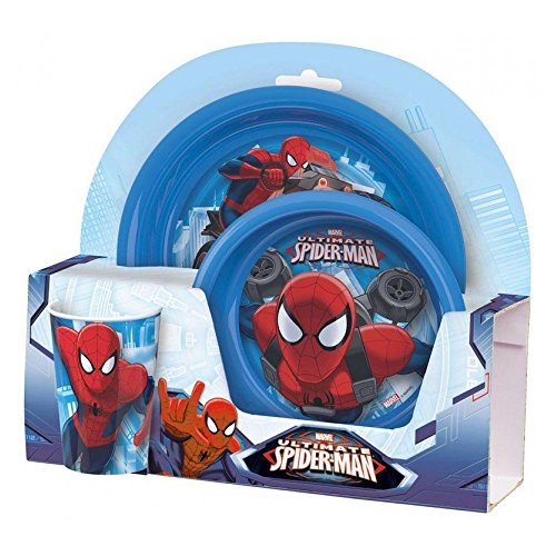 Studio : BWR Publisher : BWR Binding : Toy Product Description With this great, 3 piece original Marvel Ultimate Spiderman breakfast set comes on any mood to the dinner table. Make breakfast fun. The Breakfast Set includes: ?; 1 x Side Plate Diameter 8" ? 1 cereal bowl approx Ø: 6.25" ? 1 cup approx 5.74Fl oz The Breakfast Set is not dishwasher safe, but quick and easy to clean with luke warm water and washing-up liquid. 0