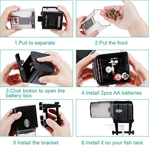 Studio : Lictin Publisher : Lictin Binding : Misc. Product Description Specifications: Note Powered by 2pcs AA batteries(not included) Color: Grey Package Size: 20*20*7.5cm/9*5.11*1.18in Package includes: 1*Automatic Fish Feeder 1*Floating Ring Warranty: The item comes with 18-month warranty. If you need any help, please feel free to contact us via email and we will give the response to you within 24 hours. 0
