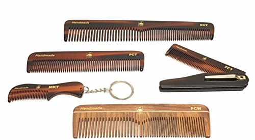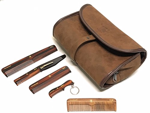 Travel Bag with Handmade Comb Pack - 5 Combs - Dressing, Pocket, Folding & Key Chain combs!