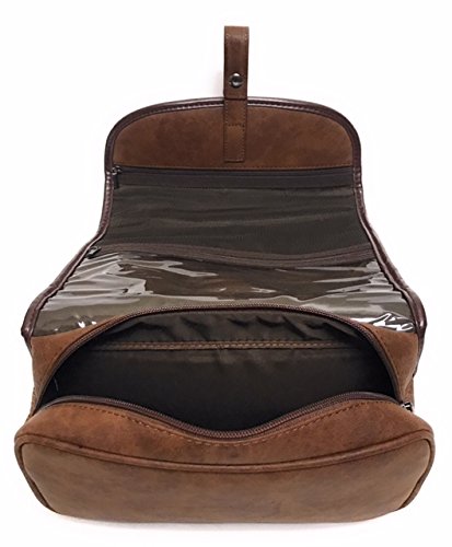 TOILETRY TRAVEL BAG - has a rugged folded design. Features compartments for travel & shaving accessories. FUNCTIONAL INTERIOR POCKETS - Water proof lining allows easy cleaning. Expandable pocket easily holds large accessories. Clear pocket for shampoos and possible leaky items. Large pocket to keep your personal belongings. DIMENSIONS - Closed Bag 10" x 3" x 6." Hangs 20" B10/BG