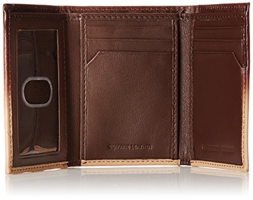 Geoffrey Beene Men's Trifold with Elongated Matte Logo Plaque, Brown/Porcelain, One Size
