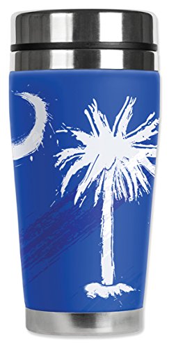 Mugzie 999-MAX "Palmetto Moon" Stainless Steel Travel Mug with Insulated Wetsuit Cover, 20 oz, Black