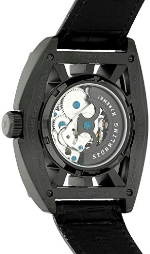 -. Binding : Watch -. Brand : Stuhrling Original -. Color : Black -. Department : mens -. EAN : 0847988011211 -. Feature : Stainless steel watch with black ion-plated tonneau-shape case featuring minimalist skeletonized dial with orange markers / Automatic self-wind movement with analog display / Protective synthetic-sapphire crystal dial window with 45 mm case diameter / Features black leather croc-embossed band with contrast stitching and buckle closure / Water resistant to 50 m (165 ft): suitable for swimming and showering -. IsAdultProduct : 0 -. Label : Stuhrling Original -. Manufacturer : Stuhrling Original -. Model : 279.335557 -. MPN : 279.335557 -. PackageQuantity : 1 -. PartNumber : 279.335557 -. ProductGroup : Watch -. ProductTypeName : WATCH -. Publisher : Stuhrling Original -. SKU : B006TZXBNI -. Studio : Stuhrling Original -. Title : Stuhrling Original Men's 279.335557 Xtreme Millennia Expo Automatic Self-Wind Ion-Plated Skeleton Watch with Black Leather Band -. UPC : 847988011211
