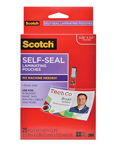 Scotch Self-Laminating ID Protectors LS852G, Includes Clips