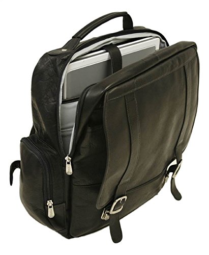 Studio : Piel Leather Publisher : Piel Leather Binding : Electronics Product Description Buckle flap-over with 2 easy thumb release clasps. Front pocket organizer and a large zippered pocket. Roomy zippered main compartment with padded laptop pocket. 2 Side zip-pockets. Top handle for easy carrying. Adjustable padded straps that may be inserted into the large rear zip-pocket for easy conversion to a brief. Made from leather. Pictured in Black. Product dimensions: 14.5 in. L x 4.5 in. W x 15 in. H. Laptop pocket: 13 in. L x 2 in. W x 14 in. H. 0