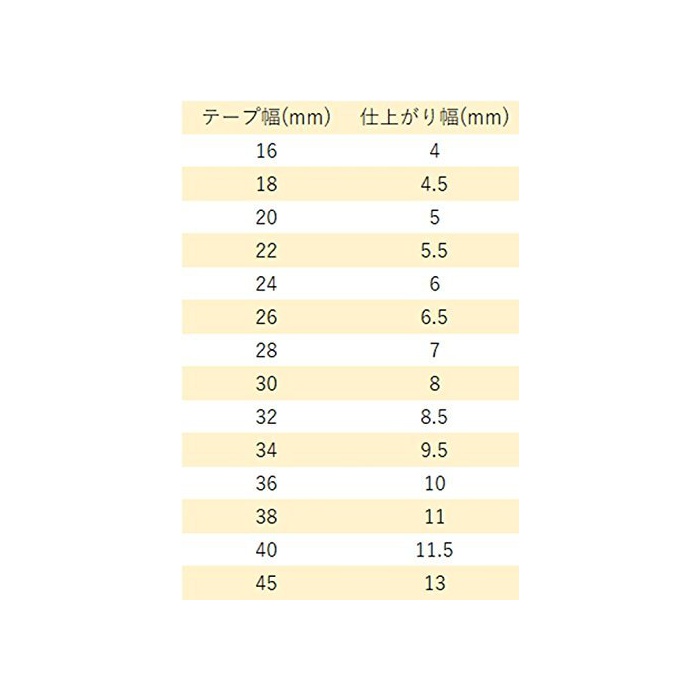 테이프폭은 16mm 18mm 20mm 22mm 24mm 26mm 28mm 30mm 32mm 34mm 36mm 38mm 40mm 45mm 입니다.