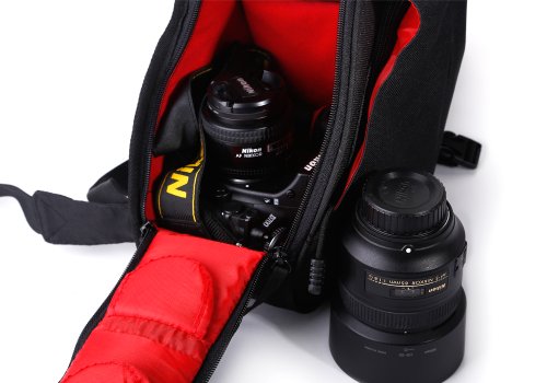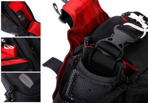 Ausgestattet mit einem Regenabdeckung, super wasserdichte und Sicherheit. Genug Platz und Taschen, um Ihr Zubehor wie Filter, Akku, Ladegerat, Speicherkarten, Kabel, Doppelobjektiv usw. zu speichern.
