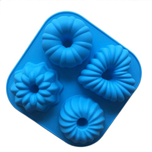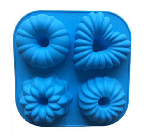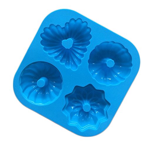 Longzang 4 Cavity Flower Silicone Mold For DIY Chocolate Jelly Candy Pudding Cookie Baking Tools Ice Tray Soap Mold, Blue