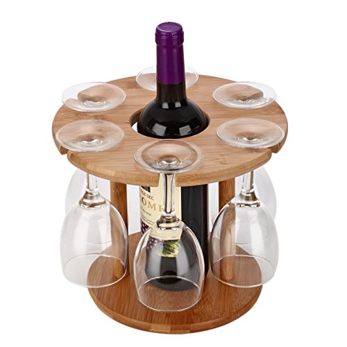 Ylyycc bamboo six hole red wine glass holder detachable rack for 6 cup and wine