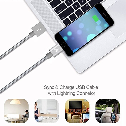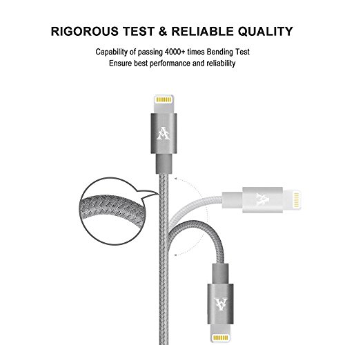 NEW&INCREDIBLY DURABLE DESIGN-- Premium aluminum shell and Tangle-free nylon braided jacket designed, Lightning cable has 4000+ bend lifespan, more durable than original device cables.