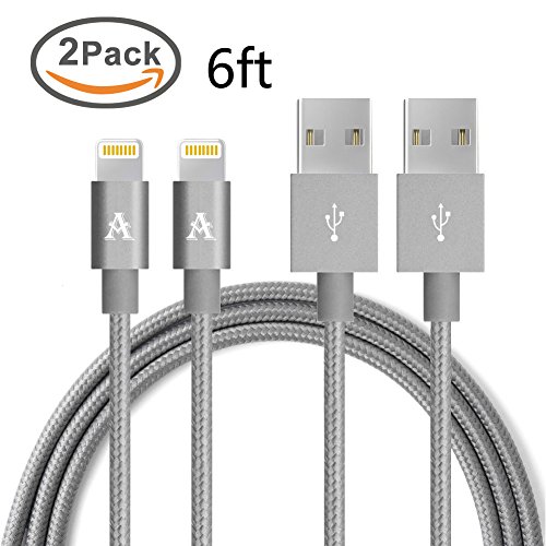 Lightning Cable,JJcall 2-Pack 6 Feet Nylon Braided Lightning to USB Sync and Charging Cable for iPhone 7s/7/7plus, iPhone 6s/6/6plus,iPhone SE/5s/5c/5/iPad mini/Air/Pro and More (Gray)