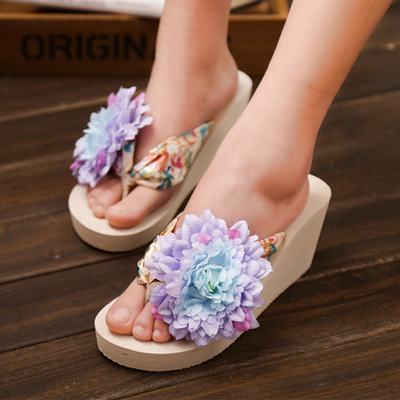 Name: DIY beach slippers female heavy-bottomed sandals slope with the wind goddess of flowers