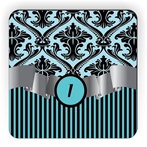 Rikki Knight Letter "I" Initial Sky Blue Damask and Stripes Monogrammed Design Square Fridge Magnet