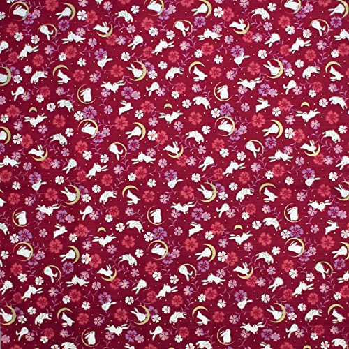 Furoshiki Wrapping Cloth Red Rabbits, Crescent Moons and Sakura Motif Japanese Fabric 50cm