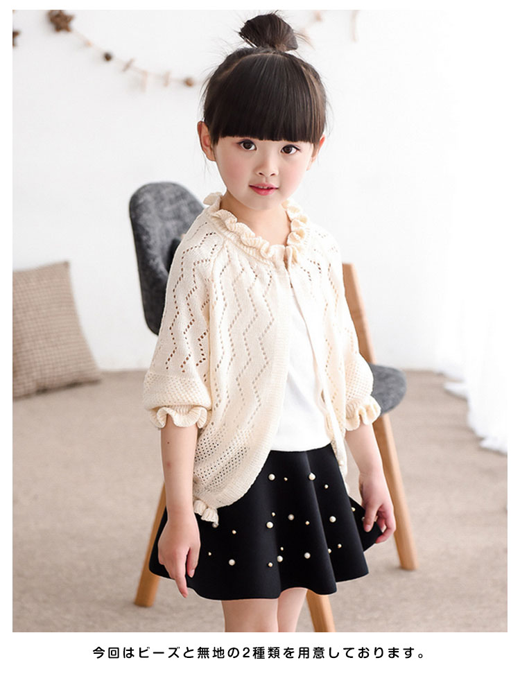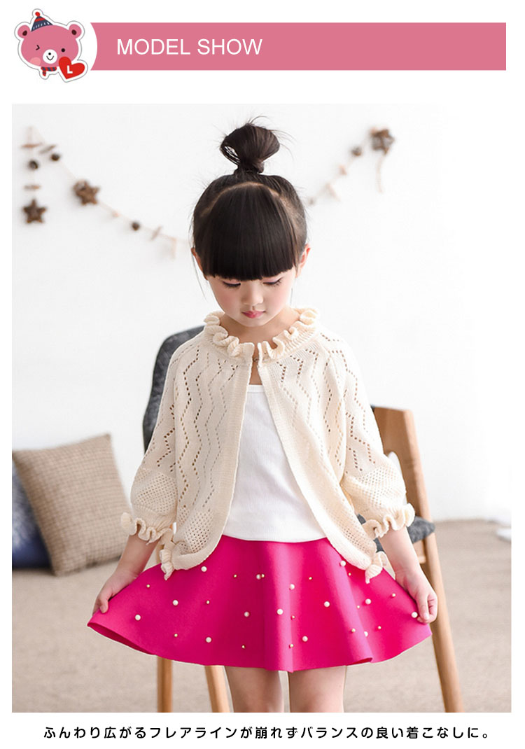 | 2017春モノ先行販売!いつも大人気なフレアスカート今年も登場!ふんわり広がるフレアラインが崩れずバランスの良い着こなしに。今回はビーズと無地の2種類を用意しております。サイズも幼児からジュニアまで展開でお姉妹と色違い持っておきたいitem!シンプルなトップスをインにして、すっきりとしたシルエットになる万能スカート。 | |