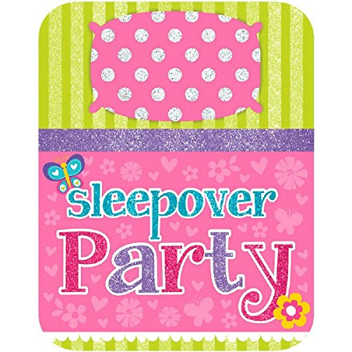 Amscan Slumber Party Girls Sleepover Large Novelty Glitter Invitation Cards (Pack of 8), Pink/Green, 6" x 4"