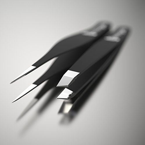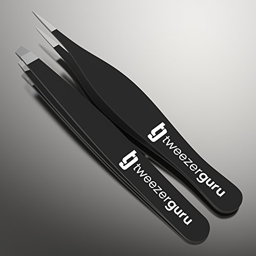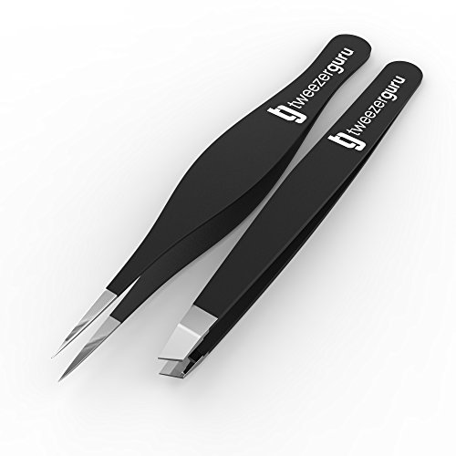 Tweezers Set – TweezerGuru Stainless Steel Slant Tip and Pointed Eyebrow Tweezer Set – Great Precision for Facial Hair, Ingrown Hair, Splinter, Blackhead...