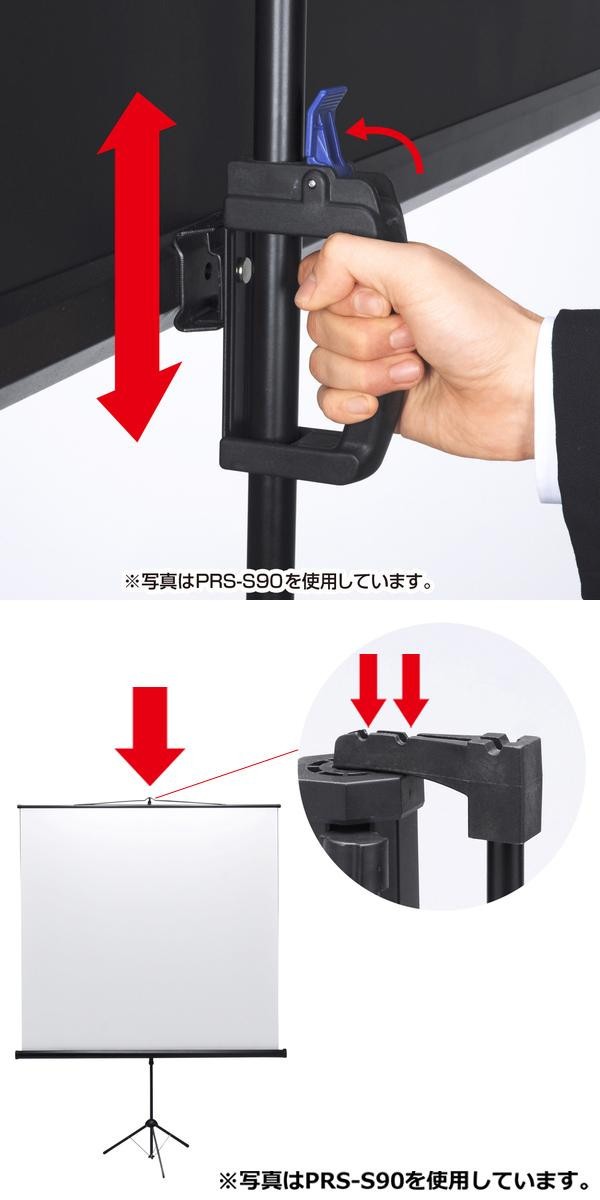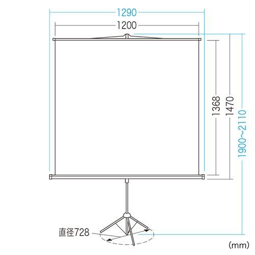三脚一体型のプロジェクタースクリーンです。スクリーンの高さや位置が調整可能、傾きは2段階に調節できます。コンパクトに収納でき、持ち運びも簡単です。