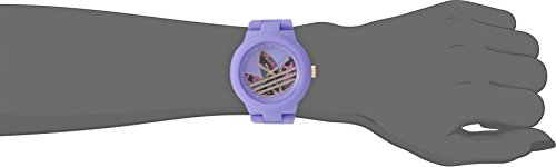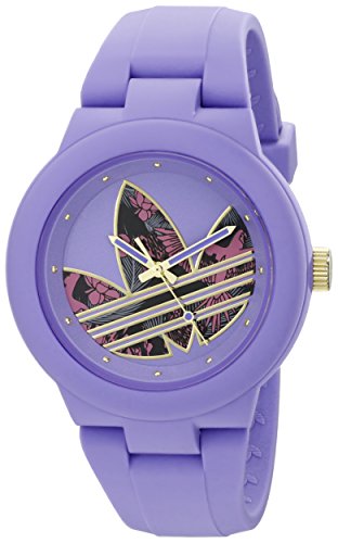 Round watch featuring logoed dial with three stripes and raised dot markers