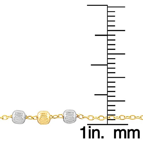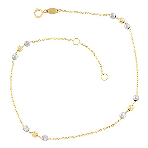 Beautifully crafted of 10k gold, this gold anklet features diamond-cut finished 10k yellow gold and 10k white gold beads on a 10k gold cable chain. This two-tone gold anklet is adjustable to 9 or 10 inches and secures with a spring ring closure.