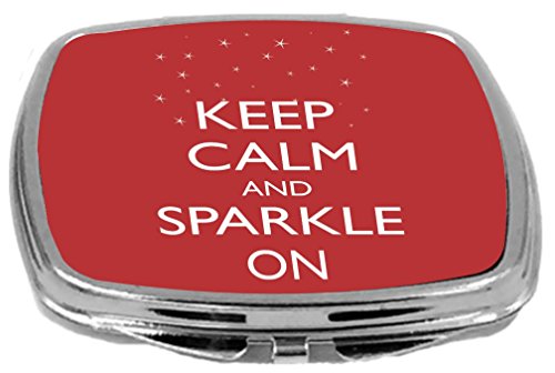 Rikki Knight Compact Mirror, Keep Calm and Sparkle On Red