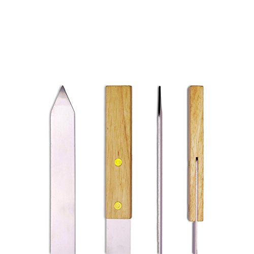 - Thick and flat design, suitable for barbecue large pieces of food such as rib, fish, tomatoes, pimento, stops the meat from rotating on the skewer
