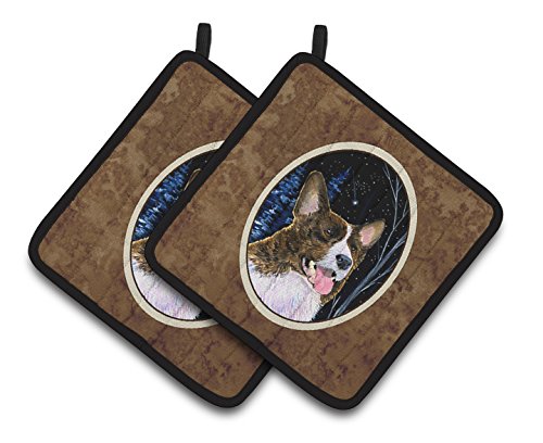 Caroline's Treasures Starry Night Corgi Pair of Pot Holders SS8387PTHD, 7.5HX7.5W, Multicolor