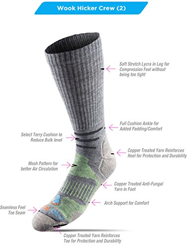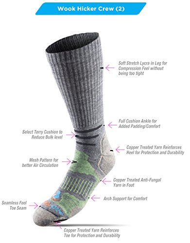 Pro-Tect Men's 1-Pair Hiking Socks Crew Cut With Blister Protection, Moisture Wicking, & Copper Compression Technology (Large, Grey/Lime)