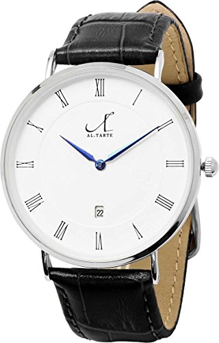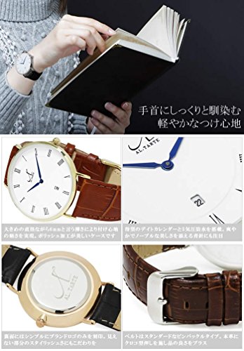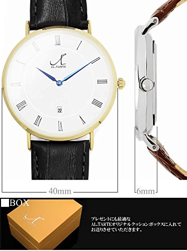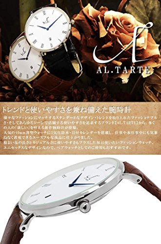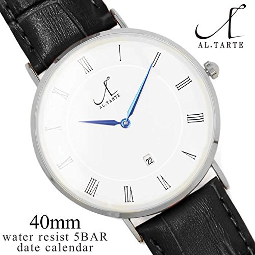 [앨 타르트]AL.TARTE 손목시계 아날로그 가죽 벨트 40mm 초박형 가죽 레더 방수 캘린더 AL1005 실버 블랙 맨즈 레이디스 유니섹스