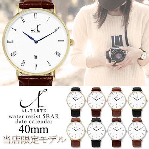 원본상품명: [アルタルト]AL.TARTE 腕時計 アナログ 革ベルト 40mm 薄型 本革 レザ? 防水 カレンダ? AL1005 シルバ? ブラック メンズ レディ?ス ユニセックス